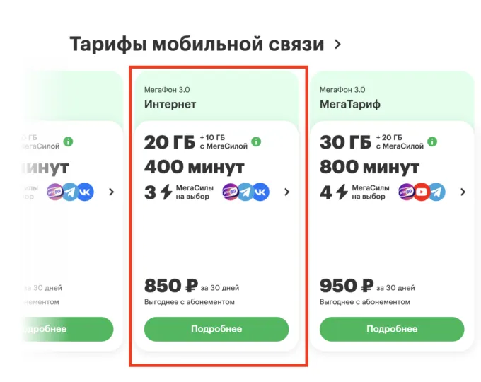 Нашли самые выгодные тарифы у всех операторов. Большой запас минут и гигабайт за адекватные деньги