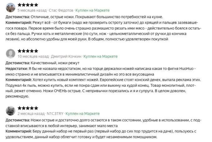 Ну, а самый весомый аргумент в пользу покупки этого лота — народный рейтинг. На Маркете набор получил оценку в 4,9 балла на основе 978 рецензий. Это очень крутой показатель. В отзывах счастливые обладатели пишут о высоком качестве и максимально острой заточке изделий Xiaomi.