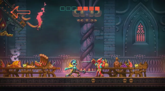 Игра не похожа на традиционный файтинг и чувствуется иначе. Как и в первой Nidhogg, вы бежите навстречу друг другу и пытаетесь проткнуть соперника мечом. Кто пропустил удар, тот лопнул и пустил противника дальше. Но вы воскреснете и побежите ему навстречу снова. Иначе он доберется до конца карты и победит. Да, здесь цель не в том, чтобы прикончить врага, а чтобы обойти его. То есть Nidhogg II работает вообще не так, как вы привыкли. И это потрясающе!
