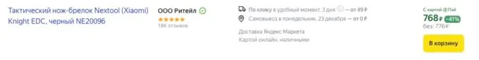 Обычно мини-мультитулы Xiaomi стоят свыше 1300 рублей, но сейчас компактный NexTool Mini Knight EDC можно купить на Яндекс Маркете за 776 рублей. А с кэшбеками некоторых банков он обойдётся ещё дешевле.