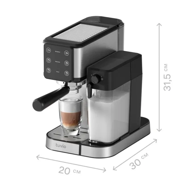 Лучший девайс для начала дня — Tuvio TCM04EA. Стильная и современная кофеварка рожкового типа с автоматическим капучинатором. На фоне большинства других подобных аппаратов она выделяется своим изысканным дизайном и оттенком, напоминающим «натуральный титан». Такой прибор дополнит ваш интерьер не только на кухне, но и в гостиной. А главное, ароматный кофе всегда будет на расстоянии вытянутой руки.