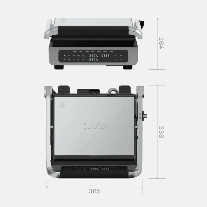 Tuvio TG02DM поддерживает три режима работы: гриль, барбекю и печь. Поэтому устройство идеально подходит для стейков, пирогов, рыбы и многокомпонентных блюд. Сенсорное управление позволяет легко регулировать температуру пластин, а 12 встроенных программ предлагают оптимальные настройки для разных продуктов.