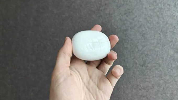 Теперь поговорим о другой гарнитуре. Ugreen HiTune T3 Pro отличаются конструкцией и наличием более продвинутых опций. У них округлый кейс-«мыльница» и резиновые амбушюры, с которыми можно заниматься активным спортом и не беспокоиться, что слушать музыку помешают посторонние звуки. О выпадении наушников речи тоже нет, мы проверили это во время очень интенсивного кардио.
