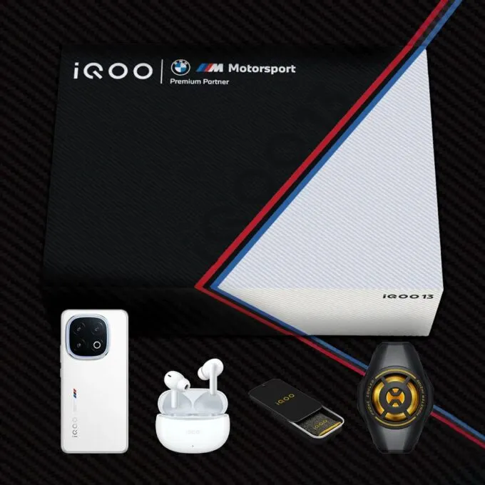 В нашем случае речь идёт о топовой версии на 16/512 Гбайт — именно её привезли в Россию. Самый кайф в том, что модель продаётся в комплектации Gift Box. В комплект входит лимитированный подарочный бокс, сделанный в коллаборации с BMW. Среди подарков беспроводные наушники IQOO TWS i1, охлаждающий кулер 2 Neo и сенсорные игровые напальчники для смартфона. Просто роскошный набор для мобильных геймеров.