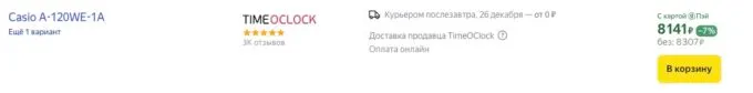 Обычно за Casio Vintage просят около 11 тысяч, но сейчас ретрофутристичные часики можно купить на Яндекс Маркете всего за 8141 рубль. А с кэшбеками некоторых банков они обойдутся ещё дешевле.