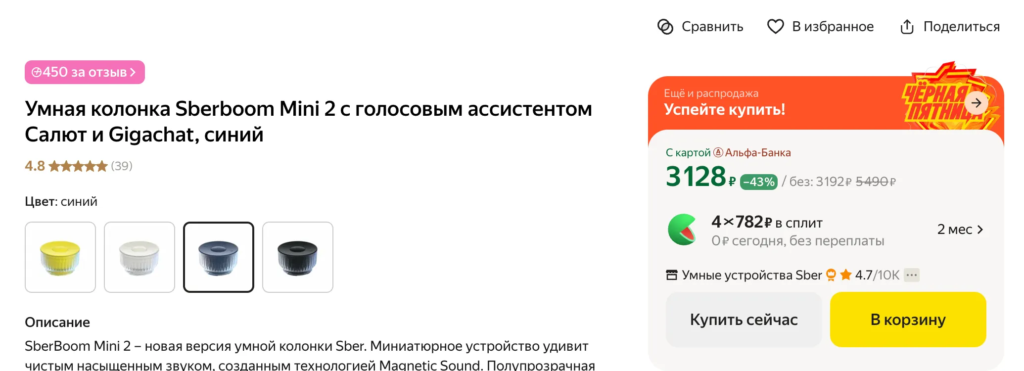 - SberBoom Mini — 3500 рублей, прошлый месяц — 3900 рублей
