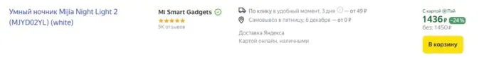 Прямо сейчас топовый ночник Xiaomi Mijia Night Light 2 на Яндекс Маркете можно урвать за 1490 рублей, а с кэшбеком некоторых банков он обойдётся в ~1 тысячу рублей.