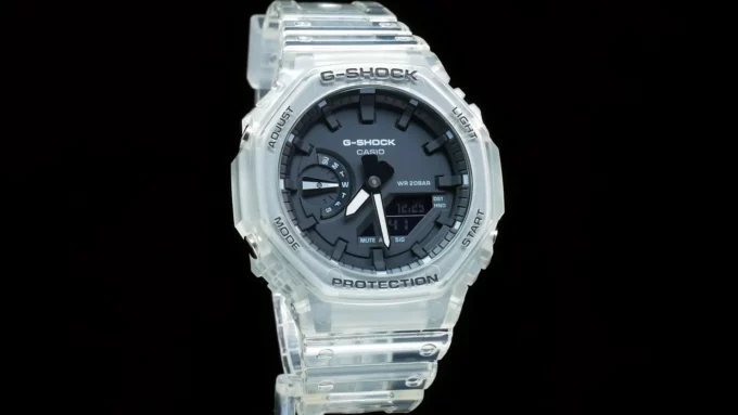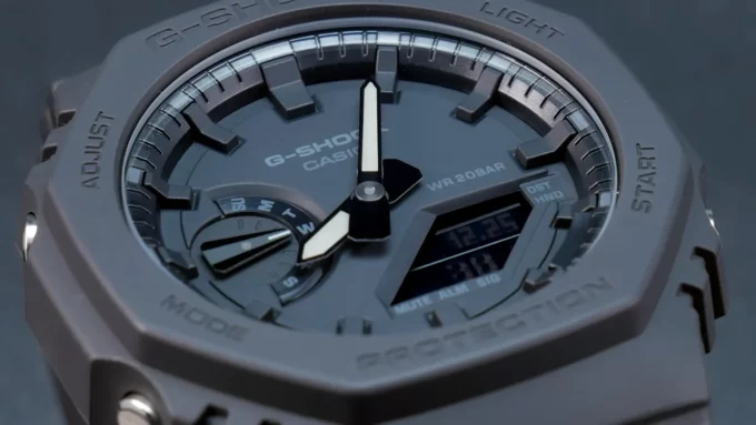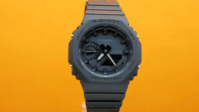 Безоговорочным лидером оказалась одна модель — GA-2100-1A1. У часов черный-черный корпус, усиленный карбоном, но имеющий толщину всего 11,8 мм. Девайс имеет комбинированный циферблат, двойную батарейку на 3 года использования, яркую подсветку, будильник, таймер, календарь, 200-метровую водонепроницаемость.