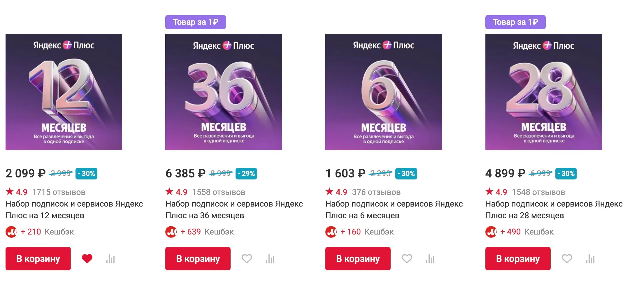 Можно искать и на других маркетплейсах, но здесь все очень индивидуально. Например, «М.Видео» довольно легко раздает свои баллы и предлагает компенсировать ими 30% стоимости товаров. Так, 36 месяцев подписки можно взять за 6,4 тысячи рублей (с учетом баллов) и получить около 180 рублей за месяц. С одной стороны, брать столько за один раз рискованно по разным причинам, с другой, вы будете защищены от повышения стоимости «Плюса» в ближайшие три года.