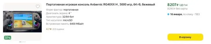 Изначально за свежевышедшую консоль Anbernic RG40XX H (2024) просили под 12 тысяч, но сейчас на Яндекс Маркете её можно купить всего за 8290 рублей. Также не забывайте, что некоторые банки готовы отсыпать кэшбек за покупки на этой площадке.