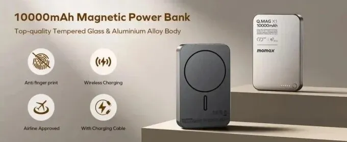 На корпусе Momax Q.Mag X расположена кнопка включения. Рядом с ней — индикаторы уровня заряда. В нижней части размещён порт USB-C, который используется как для зарядки самого аккумулятора, так и для подключения к другим устройствам. Более эстетично смотрится версия на 5000 мАч — её толщина составляет всего 8,3 мм (как iPhone 16 Pro). Для тех, кто ищет больше ёмкости, доступны модели на 10 000 мАч и 20 000 мАч. Мощность зарядки достигает 15 Вт по кабелю и 12 Вт при использовании MagSafe. В комплект входит короткий USB-C кабель и салфетка для протирки.