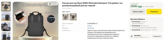 Прямо сейчас на Яндекс Маркете стильный рюкзак Wiwu Minimalist Backpack можно купить за 2690 рублей. А с кэшбеком некоторых банков он обойдётся ещё дешевле.