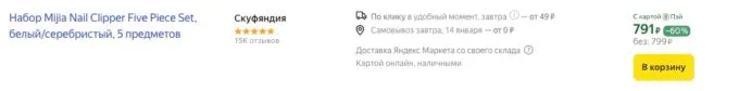 Сейчас на Яндекс Маркете топовый маникюрный набор Xiaomi Nail Clipper Five Piece Set можно приобрести всего за 799 рублей. С кэшбэками от некоторых банков цена станет ещё более выгодной.