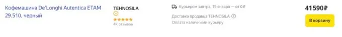 Обычно такие кофемашины стоят около 60 тысяч, но сейчас на Яндекс Маркете флагманскую De’Longhi Autentica можно урвать всего за 41 590 рублей. Также не забывайте, что многие банки готовы отсыпать кэшбек за покупки на этой платформе.