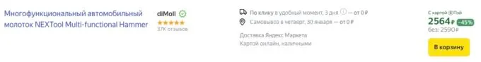 Обычно за супермолоток Xiaomi просят около 5 тысяч, но сейчас на Яндекс Маркете стильный мультитул NexTool Multifunctional Hammer можно урвать всего за 2590 рублей. Также не забывайте, что некоторые банки готовы отсыпать кэшбек с покупок на этой платформе.