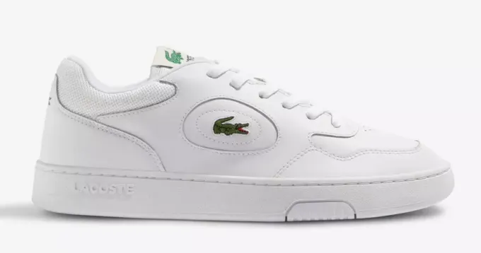 Начинаем с белых кедов Lineset, выполненных из натуральной кожи. Это минималистичная обувь, которая отлично подойдет и к спортивкам, и к брюкам. Внутри подкладка из переработанного полиэстера, а снаружи ничего лишнего: только фирменный аллигатор, украшающий язычок и боковые части айтема.