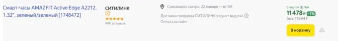 Сейчас мощные Amazfit Active Edge можно купить на Яндекс Маркете от 11 594 рублей. А с кэшбеками некоторых банков они обойдутся дешевле.