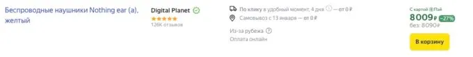 Прямо сейчас стильные беспроводные наушники Nothing Ear (a) можно урвать на Яндекс Маркете всего за 8090 рублей, а с кэшбеками некоторых банков они обойдутся ещё дешевле.