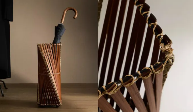 Теперь взгляните на новинку от Zara Home – корзину для зонтиков, покрытую бамбуковыми волокнами. Это вещь, которая одним только видом существенно улучшает интерьер комнаты, а заодно готовит вас к весне. Возможно, дождливой.