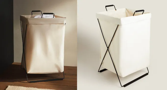 А вот и товар из линейки Individual – складная корзина для белья с металлическими ручками по бокам. Сама корзина выполнена из хлопка и полиэтилена. Размер товара – 65x44x39 сантиметров. К внешнему виду вновь невозможно предъявить претензии: корзина выглядит минималистично и стильно.