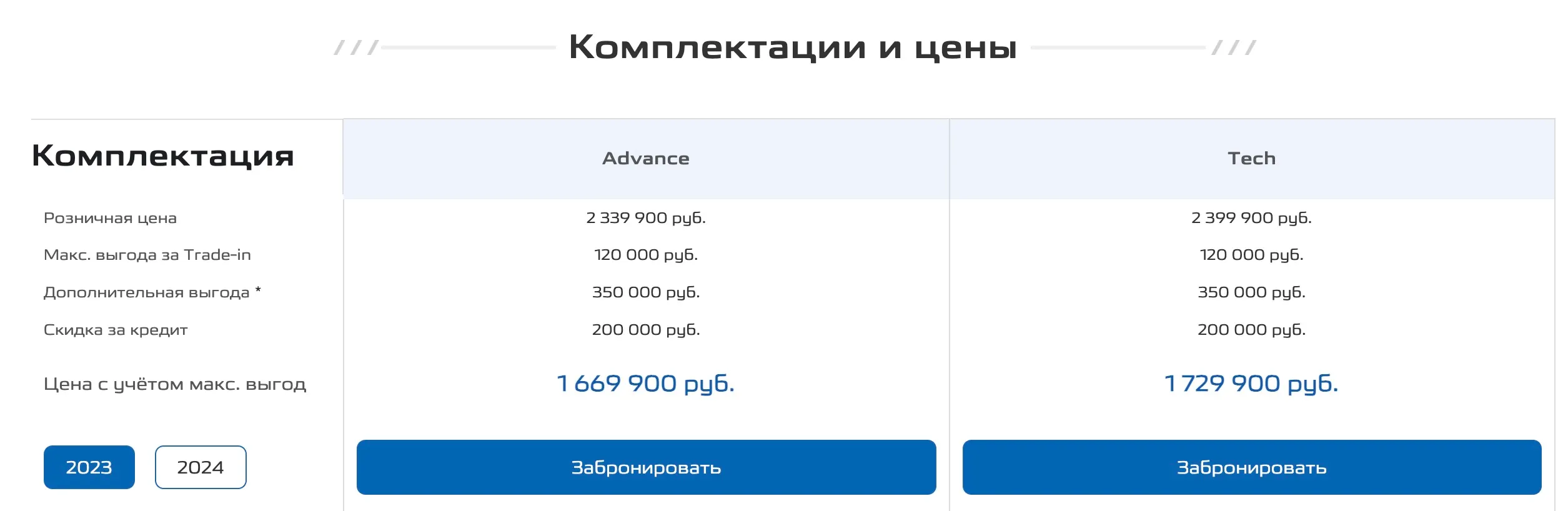 На CS35 PLUS действует скидка в размере 350 тысяч рублей. Также можно получить 120 тысяч рублей, сдав старый автомобиль по трейд-ин. Еще 200 тысяч от цены скинут при условии покупки машины в кредит. Так получается, что базовая версия Advance может обойтись в 1 669 000 рублей, улучшенная Tech — в 1 729 000 рублей.