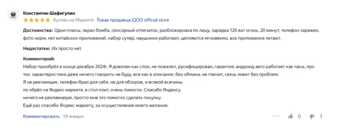 Однако даже при таком раскладе на рынке уже можно найти вариант по более-менее адекватной цене. Речь о модели IQOO 13 от суббренда Vivo. Мы заметили, что предназначенный в основном для геймеров девайс уже успел подешеветь. Сейчас устройство можно заказать на Маркете за 58 тысяч рублей с доставкой из-за рубежа без учёта таможенной пошлины. Для получения максимальной скидки рекомендуем войти в свой аккаунт на Маркете — цена без авторизации может отличаться. Прайс просто потрясающий, учитывая, что это свежий флагман с самыми актуальными характеристиками — в крупной рознице за эти деньги уж точно ничего не найдёте.