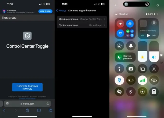 После этого всё должно заработать; Control Center начнёт открываться / закрываться сам по двойному тапу спинки айфона. Профит!