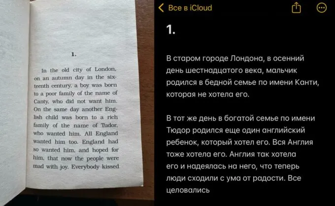 Для тех, кто устал сначала сохранять фото, потом копировать из него текст и лишь затем прогонять через переводчик. Эта команда выполнит все эти действия за вас, причём язык исходного текста она определит самостоятельно. После перевода текст (уже переведённый на русский) автоматически добавится как отдельная запись во встроенной утилите «Заметки». Очень удобно, чтобы ничего не терять.