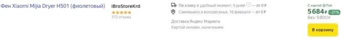 В последнее время цена Mijia Dryer H501 доходила до 10 тысяч, но сейчас на Яндекс Маркете стильный фен Xiaomi можно приобрести за 5800 рублей, а с кэшбеками некоторых банков он обойдётся ещё дешевле.