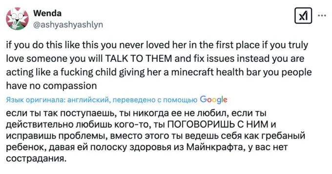 В твиттере завирусился пост от юзера @yronzx. Парень придумал систему взаимоотношений с подругой, как в играх — сделал «полоску ХП» и стал убирать по одной «жизни», если она накосячит.