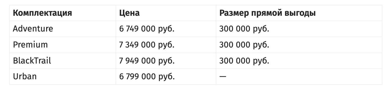Чтобы узнать размер прямой выгоды, вычитайте скидку из ценника. Например, с ней версия Premium обойдется в 7 049 000 рублей.