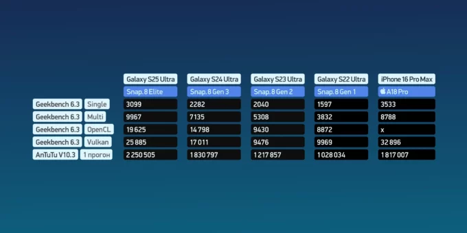 У всех моделей серии новый чип Snapdragon 8 Elite, но всего 12 Гбайт ОЗУ. Под нагрузкой телефон греется и троттлит, но на качестве работы это не отражается. Играть можно и с удовольствием. Температура выше 44 градусов не поднималась, но больше всего нагреваются рамки — жжет пальцы. Хорошо, что перегрев случается редко.