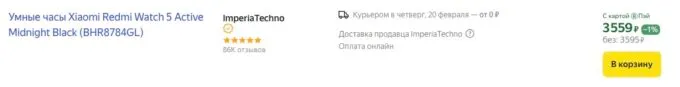 Сейчас Redmi Watch 5 Active можно приобрести на Яндекс Маркете всего за 3595 рублей. Также не забывайте, что некоторые банки могут отсыпать кэшбек с покупок на этой платформе.