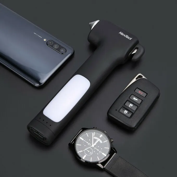 Xiaomi NexTool Multifunctional Hammer — не просто молоток, каким кажется на первый взгляд, а полноценный инструмент для выживания в случае аварии. В нём предусмотрен стеклобой, стропорез, фонарик и даже пауэрбанк. При этом он выглядит стильно и современно, а не как ржавый кусок арматуры из гаражного кооператива. Такую вещицу абсолютно не стыдно держать в салоне даже люксового автомобиля.