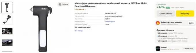 Обычно за чудо-молоток Xiaomi просят около 4 тысяч, но сейчас на Яндекс Маркете мультитул автомобилиста NexTool Multifunctional Hammer можно урвать всего за 2460 рублей. Также не забывайте, что некоторые банки готовы отсыпать кэшбек с покупок на этой платформе.