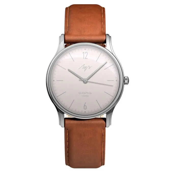 Даже не верится, что настолько чёткие часы выпускают в Беларуси. Они хороши во всём. Луч Casual 71650551 предлагают корпус из нержавеющей стали со светлым циферблатом, сапфировым стеклом и кожаным ремешком. При этом все внутренности в этой модели — японские Miyota.