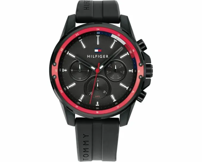 Чем ещё хороши Tommy Hilfiger Mason 1791793? Этот лот получил стальной корпус, минеральное стекло, качественный силиконовый ремешок, а также влагозащиту 30WR (выдерживают брызги, плавать в них нельзя). На руке они смотрятся гораздо дороже своего прайса.