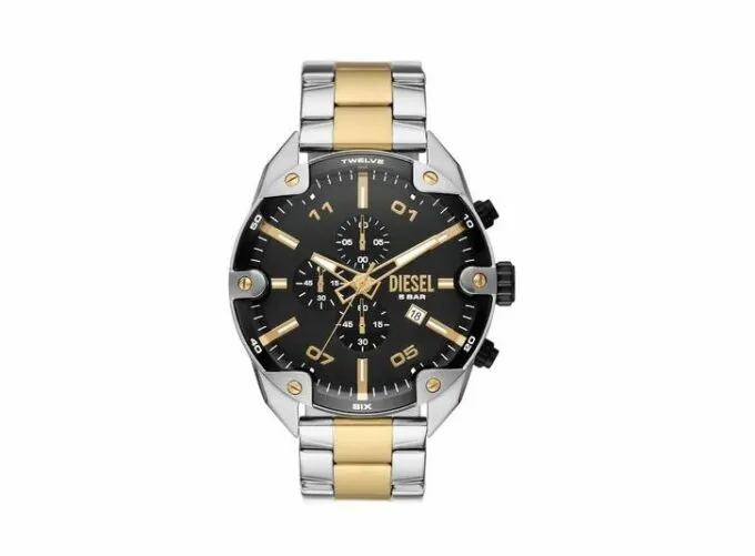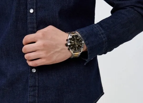 Diesel DZ4627 предлагают стальной корпус с PVD-покрытием, минеральное стекло, массивный циферблат и влагозащиту 50WR (можно плавать в бассейне). В дополнительном представлении Diesel не нуждается.