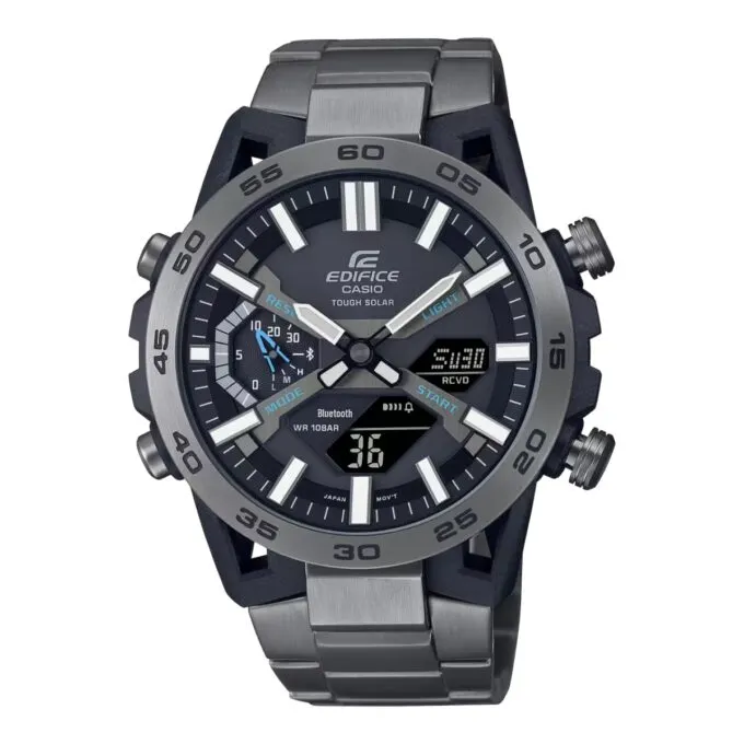 Относительно новая модель — Casio ECB-2000DC-1A — просто создана для тех, кто требует от часов максимума. В этих «Эдифайсах» есть вообще всё — от питания солнечной энергией Tough Solar до подключения к смартфону по Bluetooth. Без подзарядки они работают до 7 месяцев, а в режиме сохранения энергии — до 18!