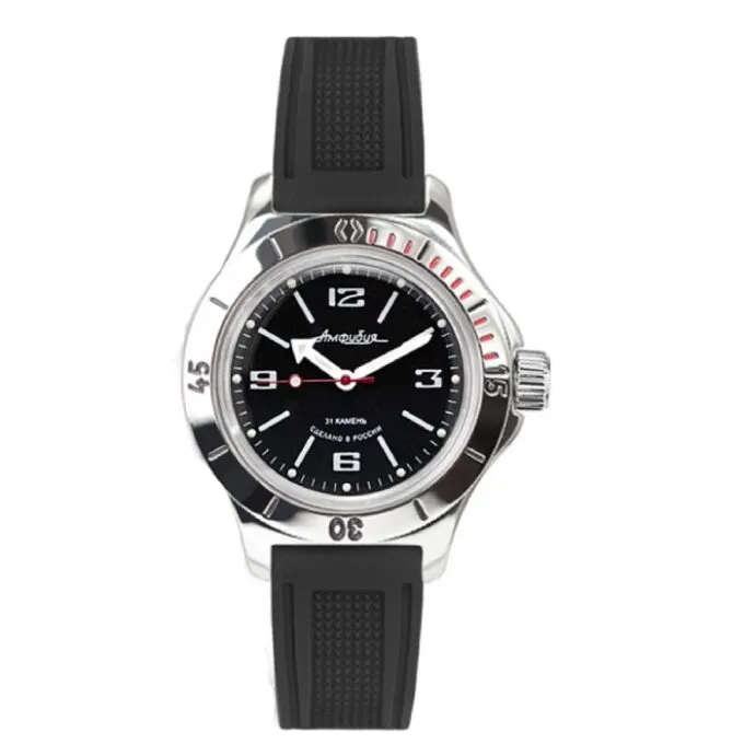 Открывают наш сегодняшний топ российские часы, прошедшие проверку временем. «Котлы» от фирмы «Восток» сочетают в себе надёжный механизм, строгий стиль и добротные материалы. «Амфибия Классика» получила 31 камень в механизме, которые отрабатывают с частотой 19 800 полуколебаний в час, а запас хода составляет 31 час. Также в них предусмотрена противоударная защита оси баланса и заводная головка с фиксацией.