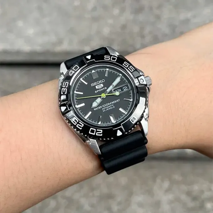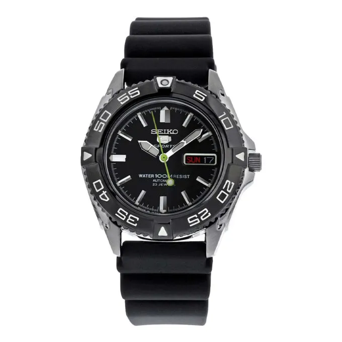 Ещё Seiko SNZB23J2 надёжно защищены от попадания воды — влагозащиты в 100WR хватит для плавания в бассейне или в океане. Дополняют дерзкий дизайн рифленая заводная головка с защитой, прозрачная задняя крышка и удобный ремешок с классической застёжкой.