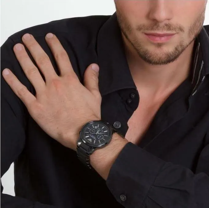 Emporio Armani AR1451 — хронограф в строгом дизайне с индикатором даты и вторым часовым поясом. Модель оснащена прочным водонепроницаемым корпусом из нержавеющей стали, защищена минеральным стеклом и дополнена надёжным стальным браслетом. Влагозащиты в 50WR хватит для использования в бассейне или даже в море. Главное — не нырять глубоко (до 50 м).