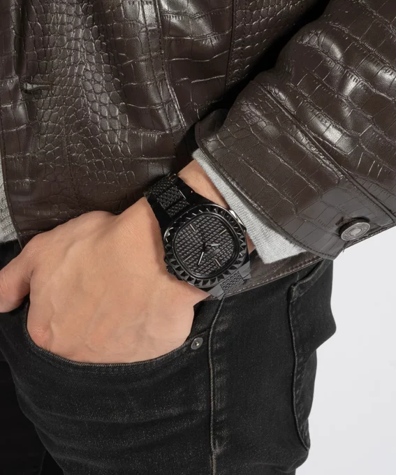 Самые настоящие часы «Тёмного рыцаря». Только посмотрите, как круто выглядит эта модель от итальянского бренда Emporio Armani. В них идеально сочетаются несколько оттенков чёрного с серебристыми метками и минималистичным логотипом. Такие часы просто созданы для любителей чёрной эстетики.