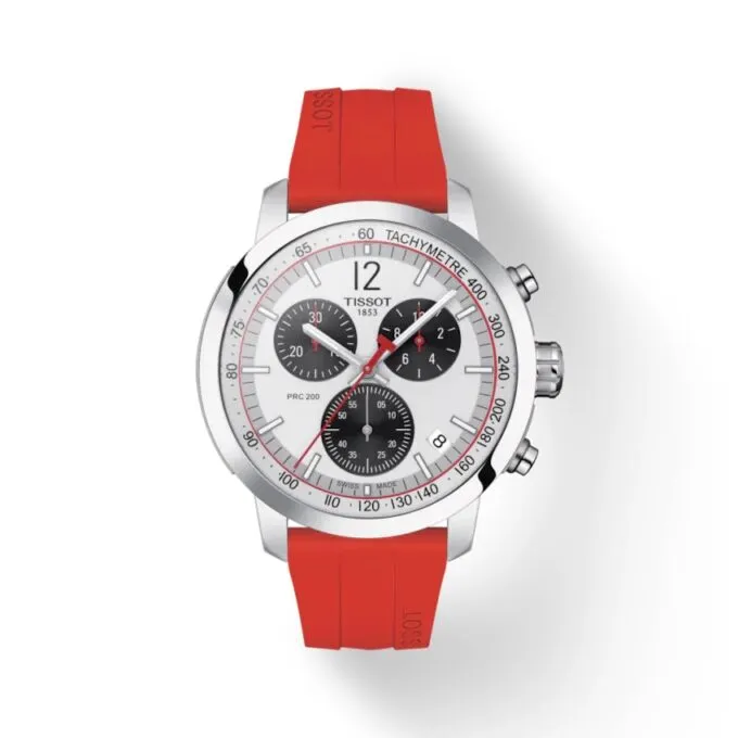 Tissot T-Sport PRC 200 Chronograph — дерзкие мужские наручные часы-хронограф с секундомером и тахиметром. Если вы присматриваете настоящие швейцарские часы, то начать лучше именно с этой модели. В кварцевом механизме установлено 4 камня, а индикатор заряда (EOL) напомнит вам о необходимости замены батареи.
