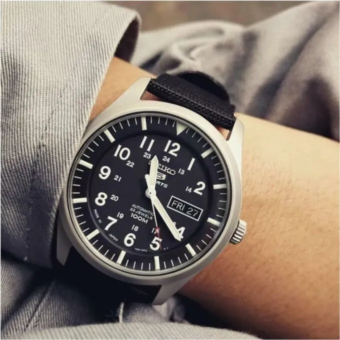 Давно зарекомендовавшая себя классика от Seiko — самые удобные механические часы на нейлоновом ремешке. Они идеально подходят для повседневного использования. Часы оснащены японским механизмом калибра 7S36 с 23 камнями. Запас хода составляет 43 часа.