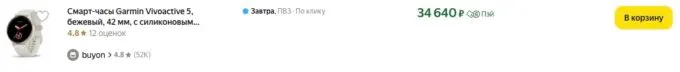 Прямо сейчас на Яндекс Маркете топовые Garmin vivoactive 5 можно купить всего за 34 640 рублей, а с кэшбеками некоторых банков они обойдутся ещё дешевле.