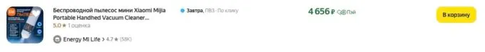 Сейчас на Яндекс Маркете мини-пылесос Xiaomi Mijia Vacuum Cleaner можно купить всего за 4750 рублей, а с кэшбеком некоторых банков он обойдётся ещё дешевле.
