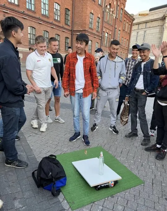 Часто на улицах попадаются фокусники, которые предлагают за деньги повторить фокус с бутылкой — приподнять ее с помощью удочки с петелькой и поставить на поверхность. «На глазах у всех фокусник справляется с задачей за секунду, а вот у остальных ничего не выходит», — заметили авторы. Участие стоит 100 рублей, в награду обещают 1000 рублей. Вот только фокусник знает, куда ставить бутылку (например, в выемку на дощечке), а турист — нет.