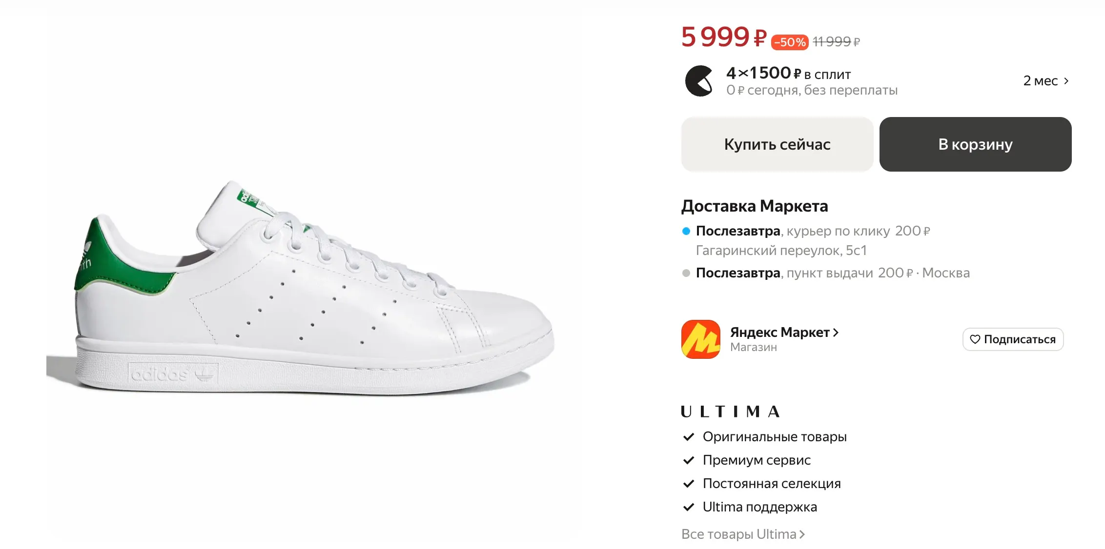 В США классическая версия Stan Smith стоит ровно 100 долларов. В России можно найти варианты сильно дешевле, причем это не обязательно будет подделка (свои я покупал 4 года назад в магазине adidas за 4К рублей). Например, прямо в магазине Маркета оригинальные Stan Smith стоят 5999 рублей — нормальный прайс за стильную, качественную и универсальную обувь.