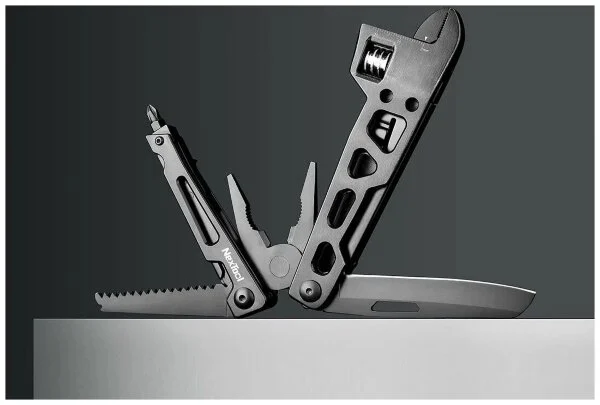 NexTool Multi-function Wrench Knife — мультитул с урбанистическим дизайном и 9 топовыми инструментами. Эта модель сразу выделяется среди других подобных девайсов. Внешне она напоминает разводной ключ, но внутри скрывается целый набор полезных вещиц. Качество сборки здесь на высоте: прочные материалы и надёжная конструкция гарантируют, что инструменты не погнутся после пары использований, как дешёвые аналоги.